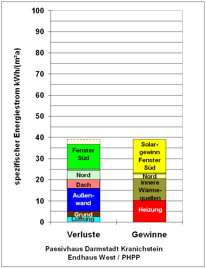 Kranichstein. The modelled value for the Passive House of 10,5 kWh/(m²a)