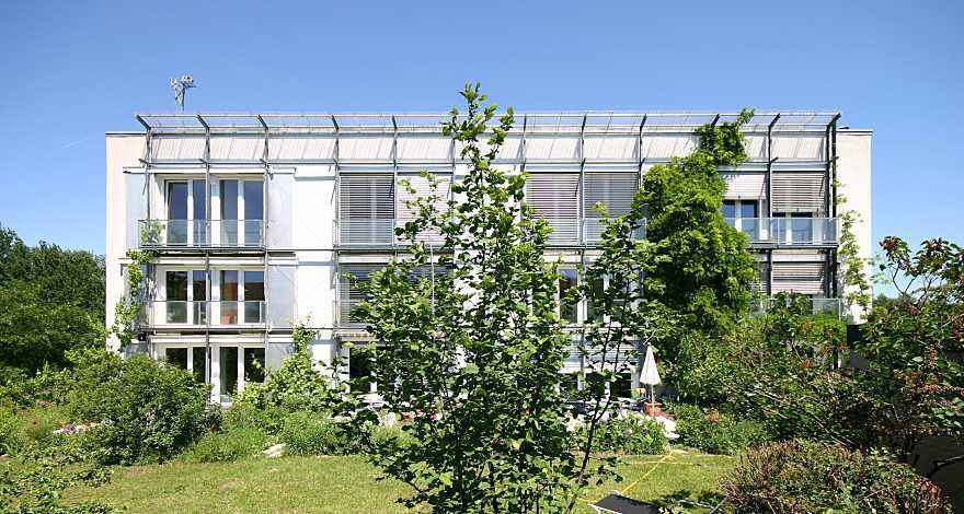 by Dr. Wolfgang Feist, Passive House Institute, 2006 The Passive House in Darmstadt Kranichstein has been constructed in 1990/91 on design plans by architects Prof. Bott/Ridder/Westermeyer for four private clients. The following photographies show the building during the seasons and there are some comments added what it feels like to live in this building at the season given. A description of the building and the scientific background you will find here (German site).