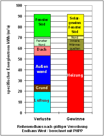 der Heizwärmebilanz nach PHPP für ein konventionelles Gebäude,