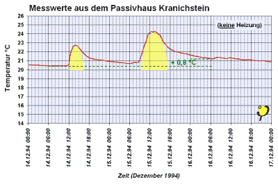 so kann durch passive Sonnenenergienutzung mit einem solchen Fenster in