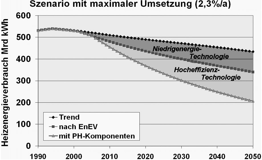 ist bei maximal sinnvoller Umsetzungsrate bis 2040 eine Heizenergieverbrauchsreduktion