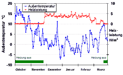die Zeit, in der ein Heizbetrieb stattfindet, ziemlich genau mit