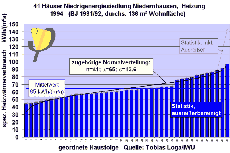 durchgeführt [Loga 1997]. Der mittlere Verbrauch von 65 kWh/(m²a)