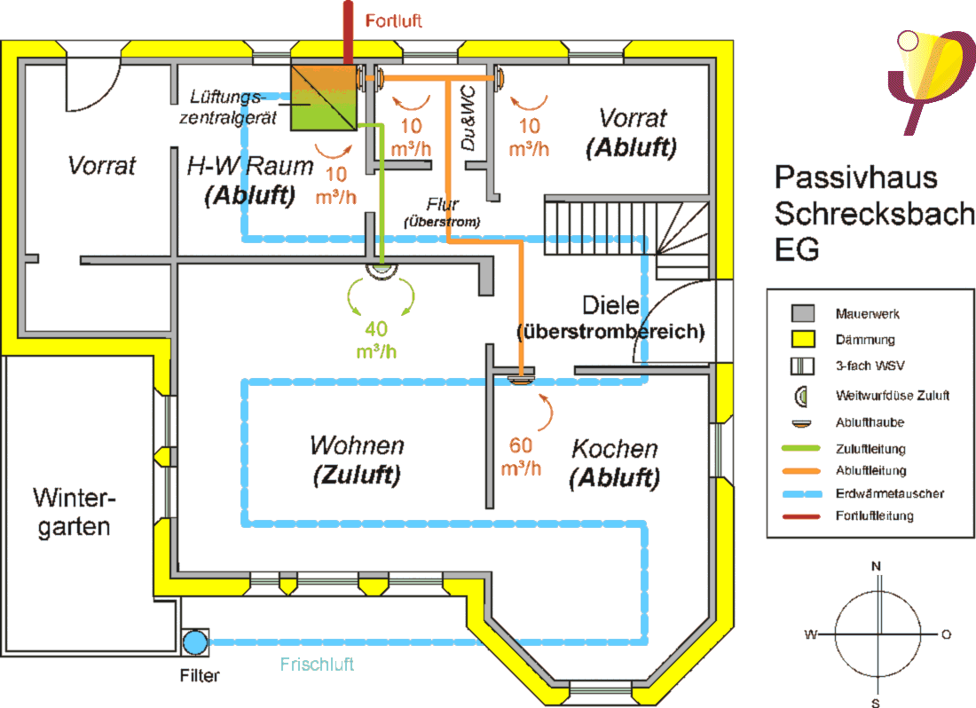 in die Zuluft liefern; nur im Bad im OG muss es noch einen Heizkörper