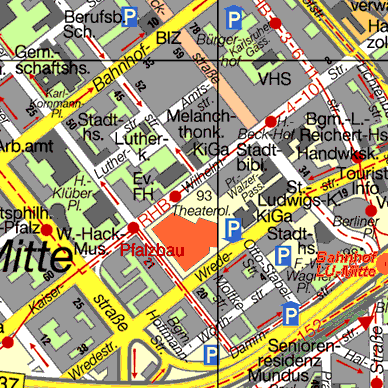 zu erreichen. Dann Richtung Innenstadt/City-Ring. Der Weg zum Pfalzbau