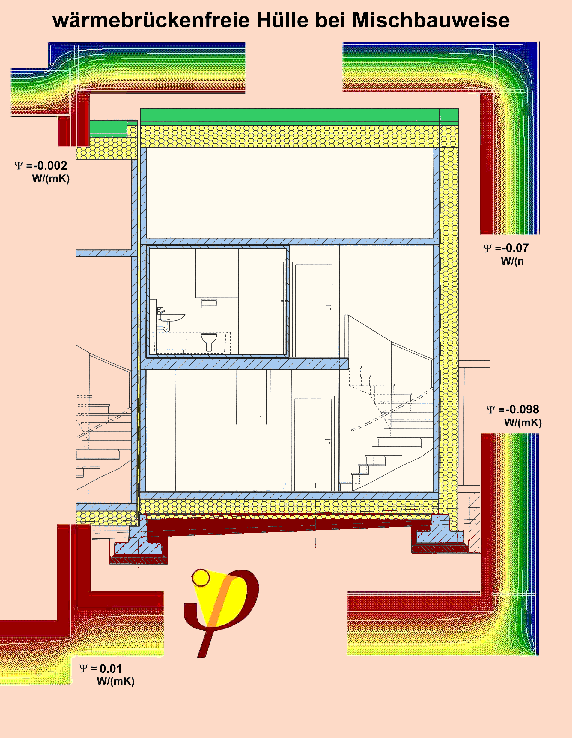 Die Abbildung zeigt eine rundum wärmebrückenfreie Gebäudehülle,