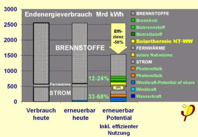 von Sonnenenergie, vor allem zur Warmwasserbereitung, noch im Promille-Bereich.